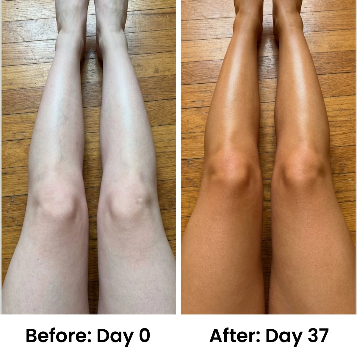 Most customers notice a healthy, "lit-from-within" radiance after 2 weeks of daily use. A full, deep golden tan typically develops between weeks 4 and 6.